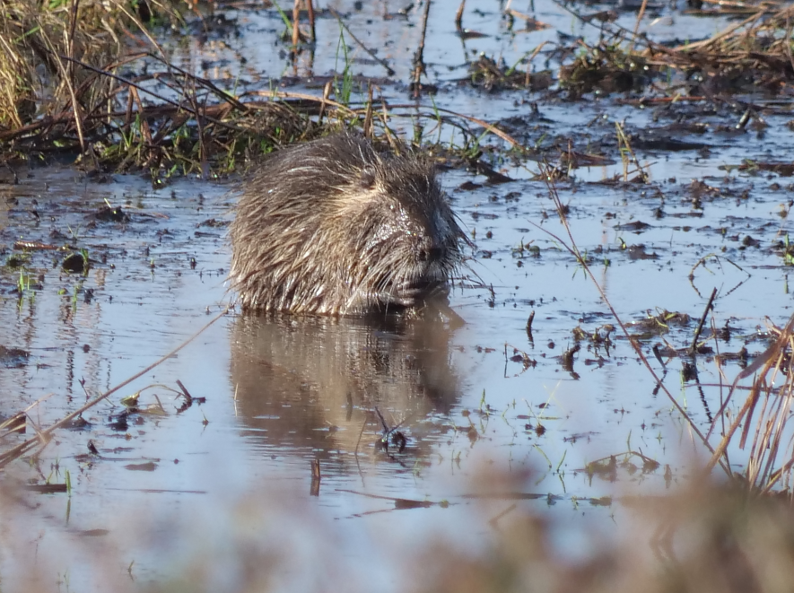 Ce matin, sur le marais de Kerabandu, les oiseaux d’eau étaient peu nombreux : pas de cygne tuberculé ni de canard souchet mais des ragondins actifs au milieu du marais.