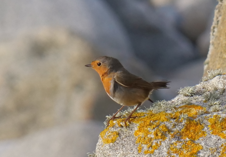 Le rougegorge familier fréquente régulièrement les parties rocheuses des plages de l’île de Batz. Cet après midi, c’est sur Porz ar Gored qu’un de ces oiseaux était observable à proximité d’un merle noir. L’effectif le plus élevé récemment sur le littoral de l’île est de 8.