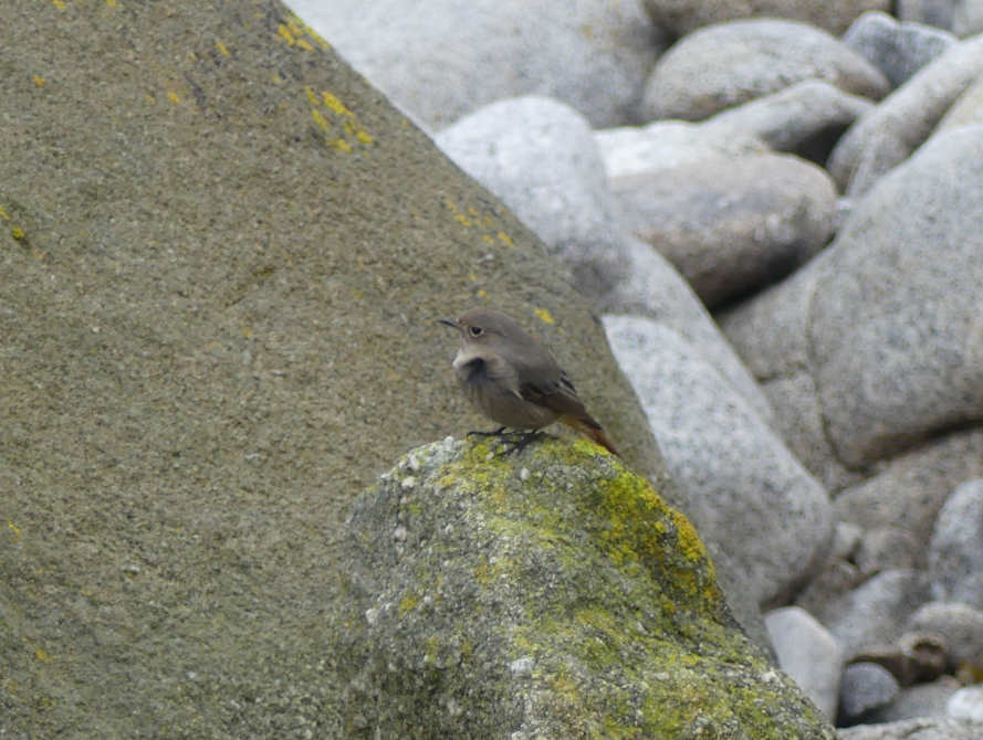 Ce matin, c’est à proximité de la fontaine qu’un rougequeue noir s’abritait des rafales de vent. Sur ce site de Poul C’horz, le rougequeue se déplace très peu et est très facile à observer à partir du sentier côtier.