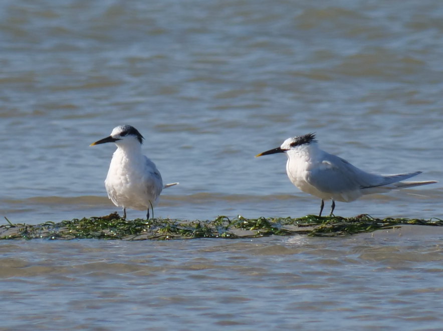Comme très souvent pendant les grandes marées, des sternes caugeks occupent les bancs de sable à proximité du chenal. Ce matin, ce sont 14 oiseaux qui étaient observables à proximité de 160 bernaches cravants et quelques mouettes rieuses.