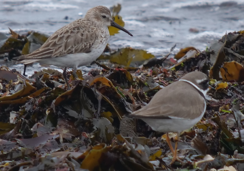 Le groupe de bécasseaux sanderlings est resté toute la journée sur la grève blanche à l’île de Batz et il a été rejoint, l’après midi, par deux grands gravelots et deux bécasseaux variables. A proximité, ce sont des huîtiers pie, courlis cendrés et un pluvier isolé qui étaient observables. A noter, l’absence du petit groupe de tournepierres à collier.