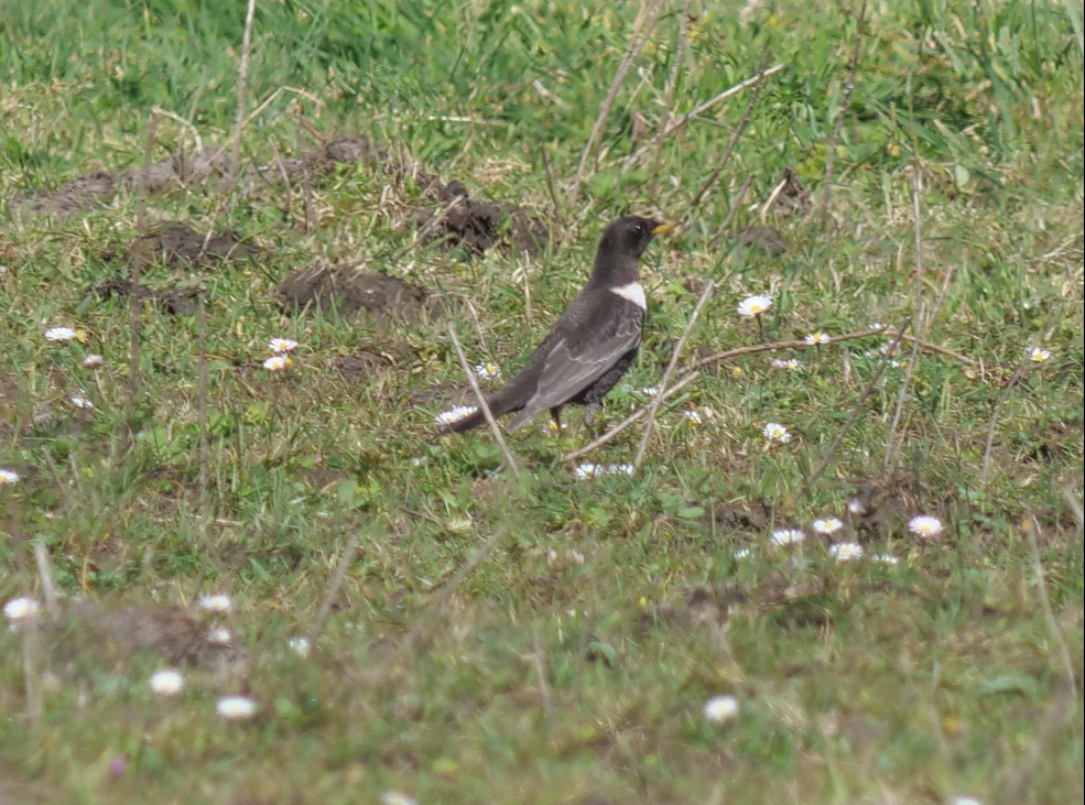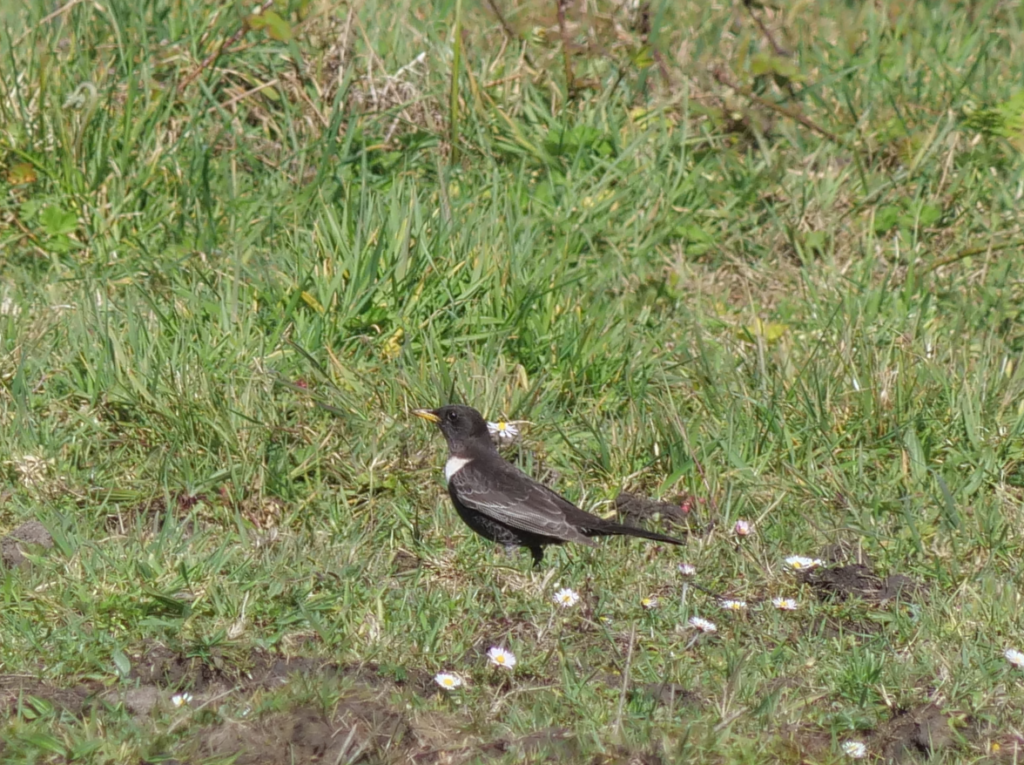 Le merle à plastron n’avait pas été observé depuis avril 2019 sur l’île de Batz. Cet après midi, il était présent sur Lenn Venn dans le Nord de la mare de Kerscao. Trois merles noirs étaient à proximité de lui.