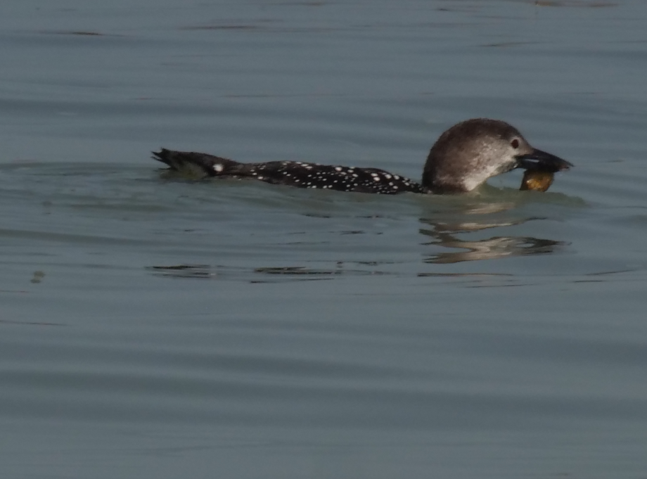 Cet après midi, un plongeon était en pêche et a dégusté un crabe vert en quelques dizaines de secondes.