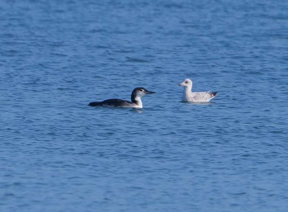 Ce matin, c’est au large de la grève blanche que cet oiseau était en pêche à proximité d’un goéland argenté et d’un cormoran huppé. Deux plongeons imbrins étaient relativement proches mais le troisième était en direction de la roche de Graouelloc a Vor.