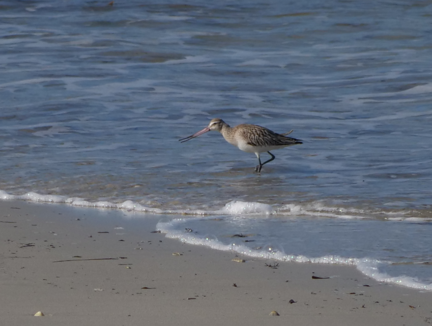 Une barge rousse isolée était présente ce matin sur Porz ar Gored. Elle était à proximité de deux huîtriers pie et de trois courlis corlieux.