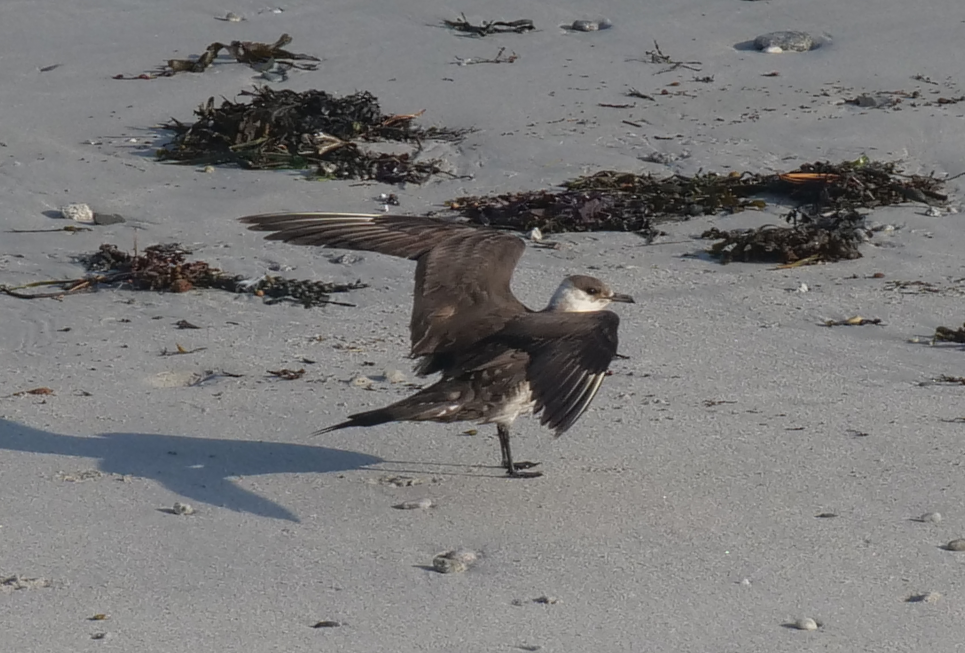 Très exceptionnellement, un labbe parasite a été aperçu sur la grève blanche en octobre 2025.