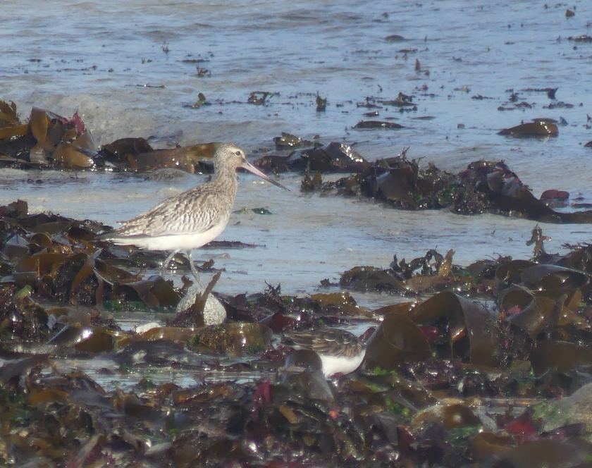 Les espèces limicoles étaient encore nombreuses ce matin mais, à l’exception des tournepierres à collier, elles étaient en petits effectifs avec cinq huîtriers pie, trois bécasseaux variables, un bécasseau Sanderling, un grand gravelot, un courlis cendré et une barge rousse dont le groupe fréquente la zone de Porz Melloc à Bilvidik.